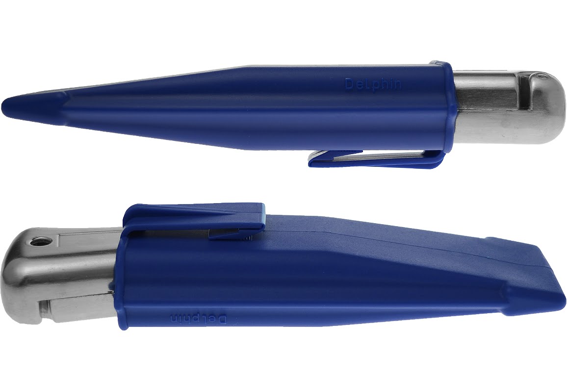 Delphin 2013 veilig kokermesVeilig robuust Delphin mes, origineel model 2013, geleverd in een stevige opbergkoker met broekklem.