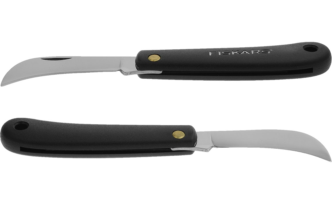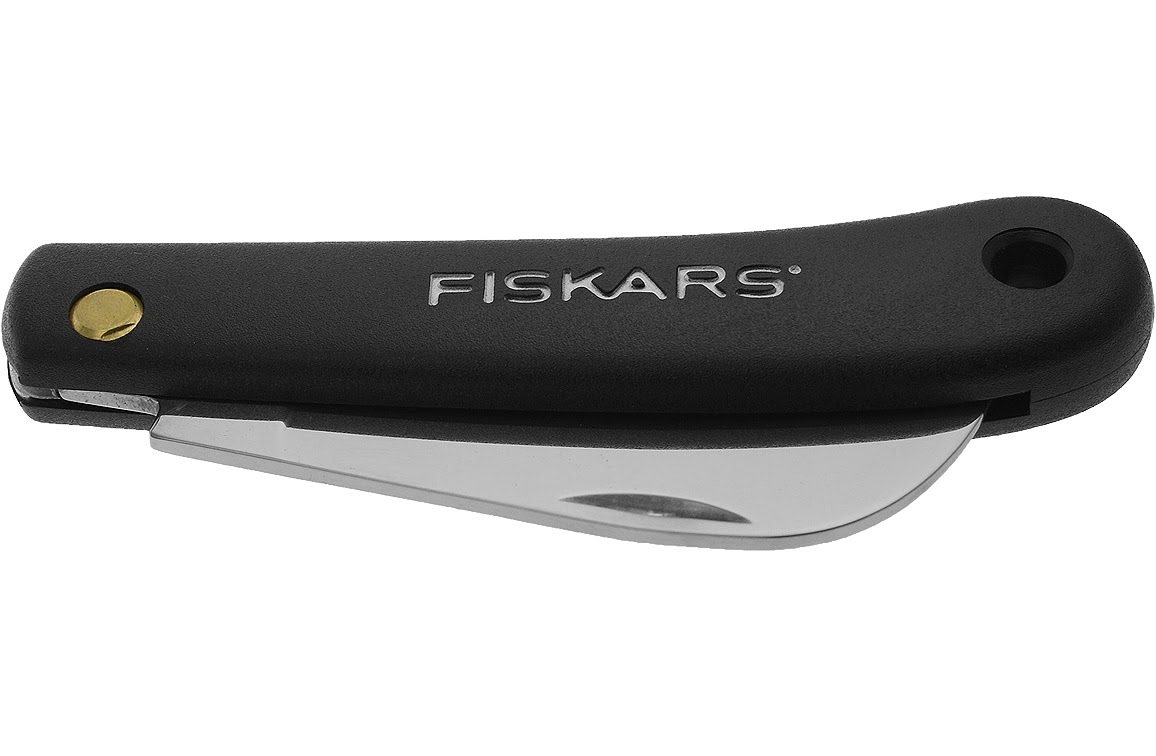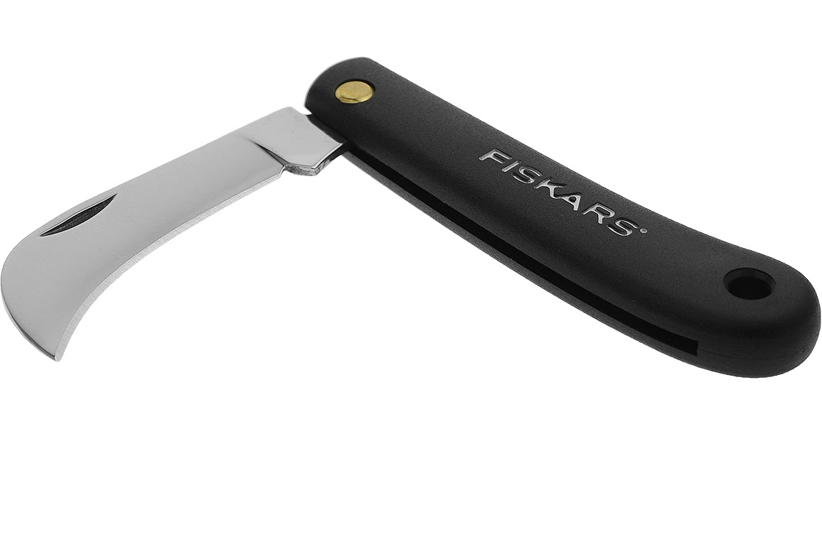 Fiskars haakmesEen spits toelopend zakmes van Fiskars, geschikt voor diverse doeleinden maar door Fiskars speciaal aanbevolen als tuinmes.