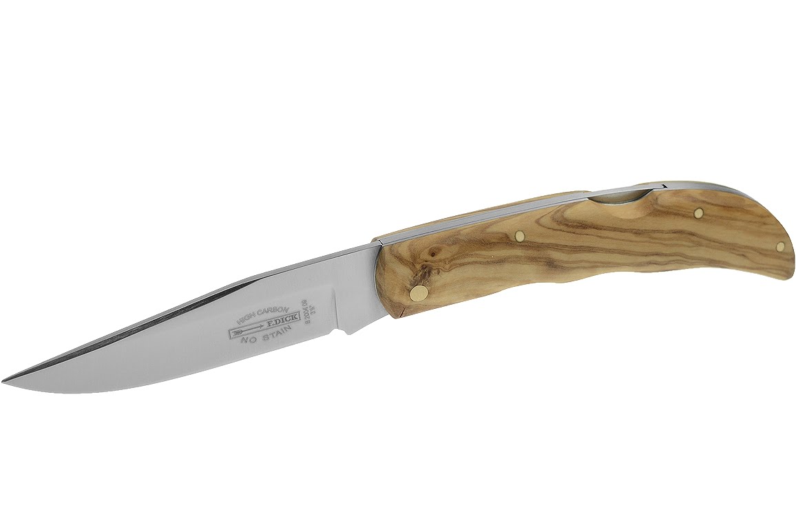 Friedr. Dick zakmesEen schitterend Duits zakmes van Friedr. Dick, de handgreep is gefabriceerd uit prachtig olijvenhout, de look van ieder zakmes is hierdoor uniek.