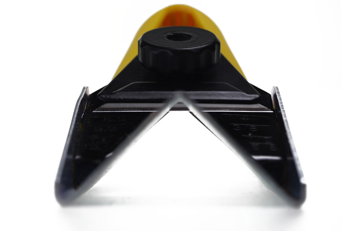 De gestanste basis geeft altijd een gladde snede, geschikt voor standaard reservemessen.