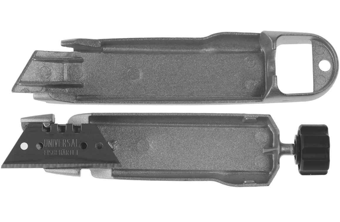 Geschikt voor zowel trapezium als haakmessen. De behuizing is gefabriceerd van extra gehard aluminium en kent hierdoor een lange levensduur.