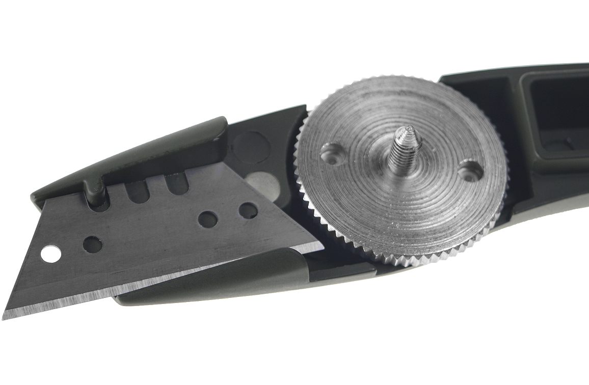 Standaard worden er geen (reserve)mesjes meegeleverd. Geschikt voor alle reguliere types "trapezium (recht) messen" en "Haakmessen" van reservemespunt.nl.