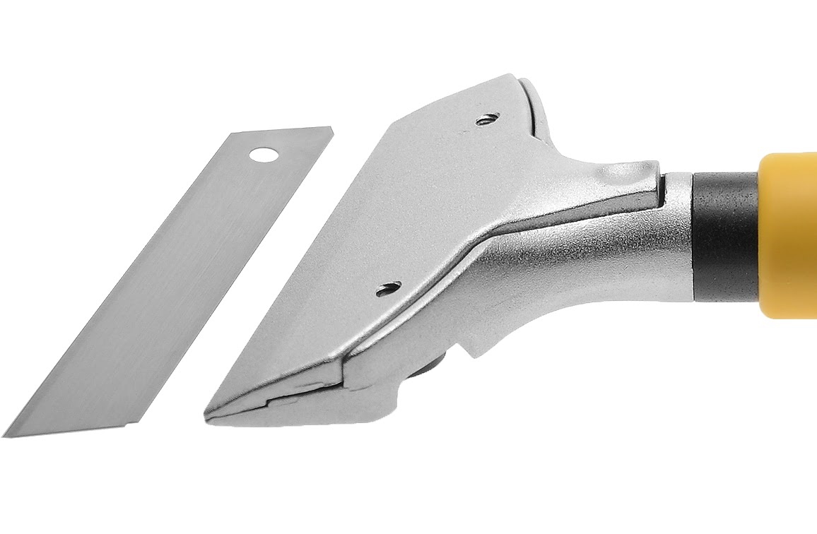 Het mes is gemakkelijk te vervangen, dankzij een automatisch veersysteem. Geleverd met beschermkap.