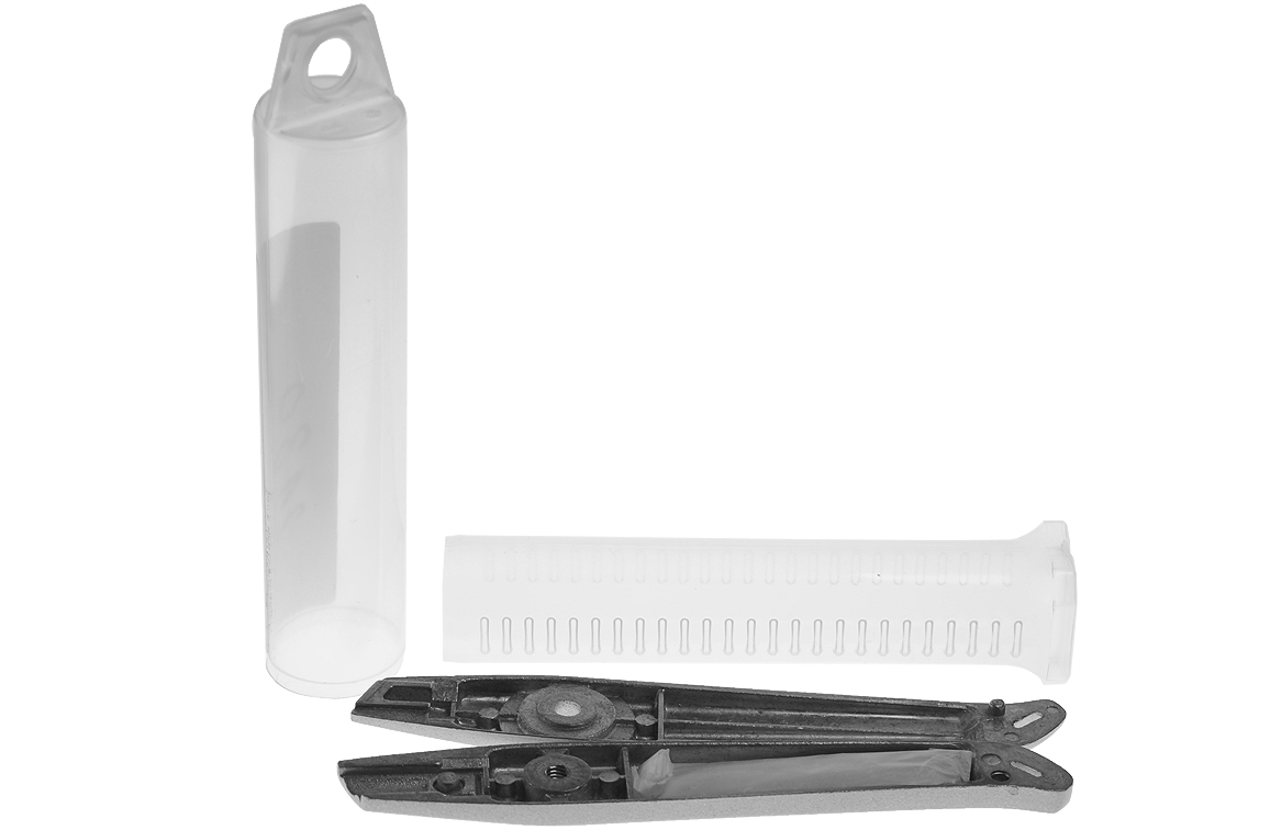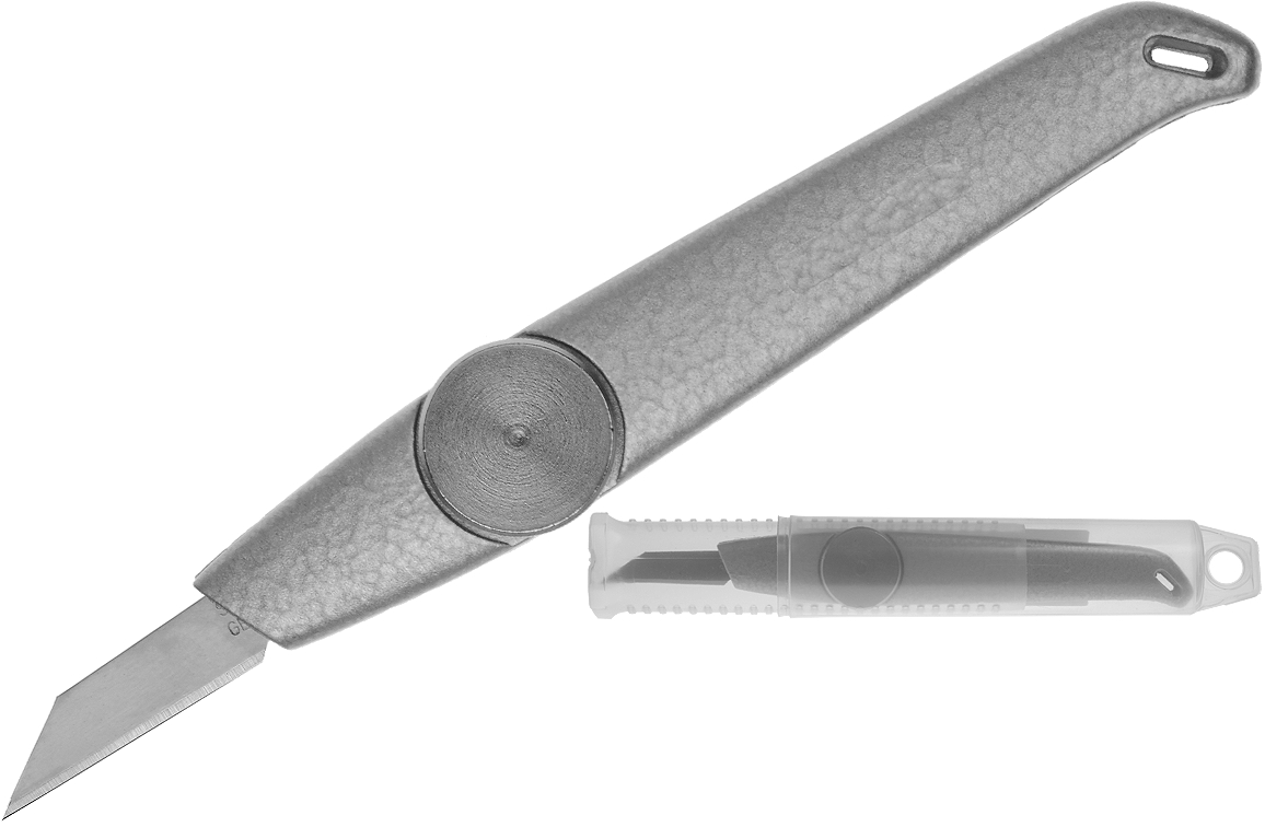 Geleverd in een kunststof koker met ophangoog, maar zonder lemmet/reservemessen.