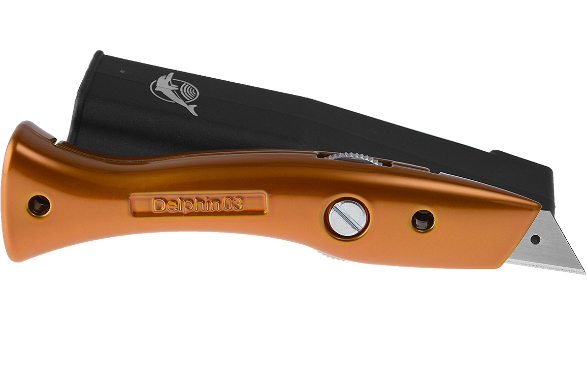 Aan de binnenzijde van dit Delphin mes is ruimte voor het opbergen van 10 reservemessen.