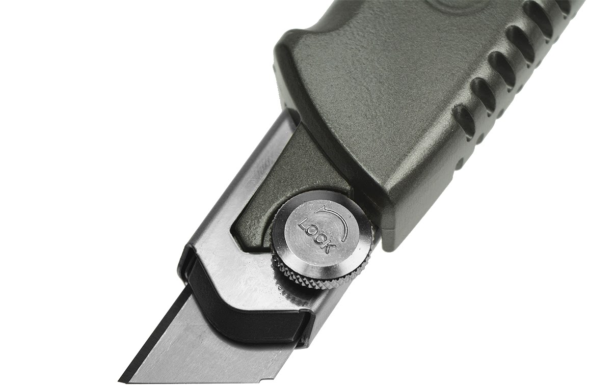 Dit afbreekmes is tevens uitgerust met een automatische lock welke voldoende is voor normaal snijwerk. Voor extra stevig snijwerk is aan de achterkant een borgschroef aanwezig om het mes extra te vergrendelen.