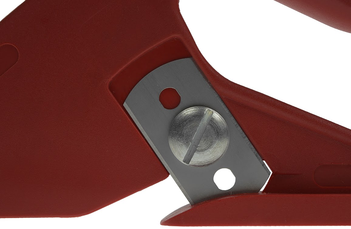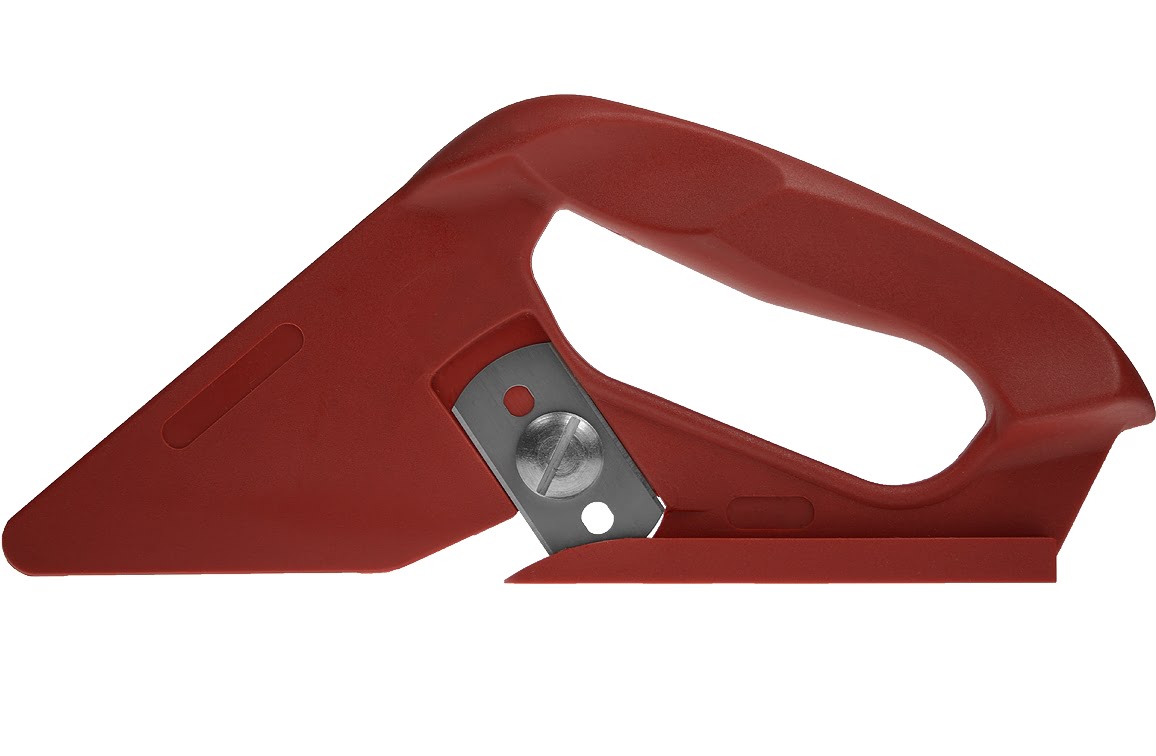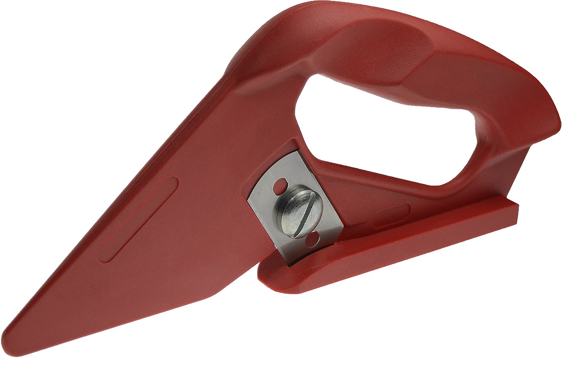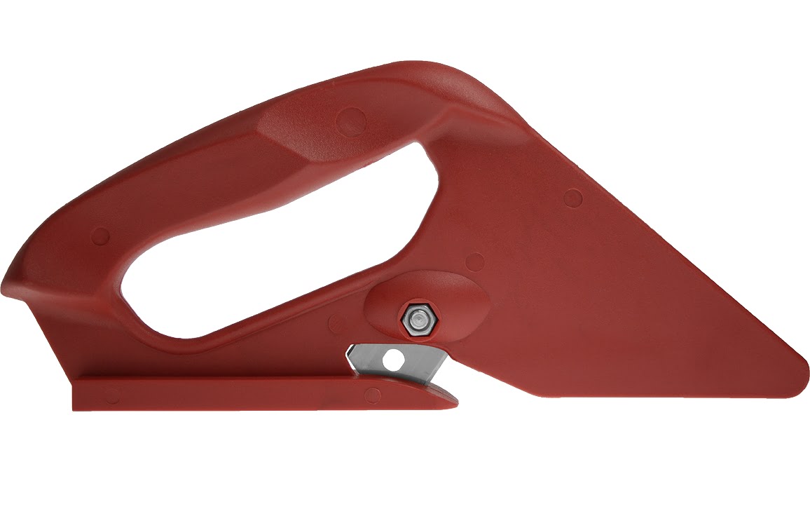 De tapijtsnijder heeft een solide ergonomische hangreep, gemaakt van gehard rood ABS kunststof.
