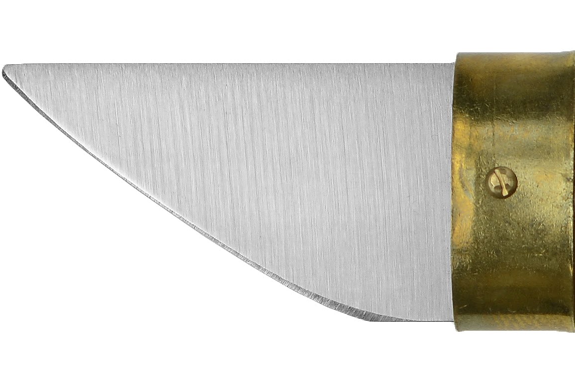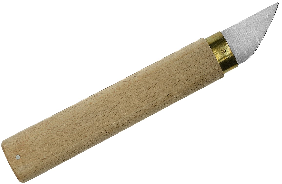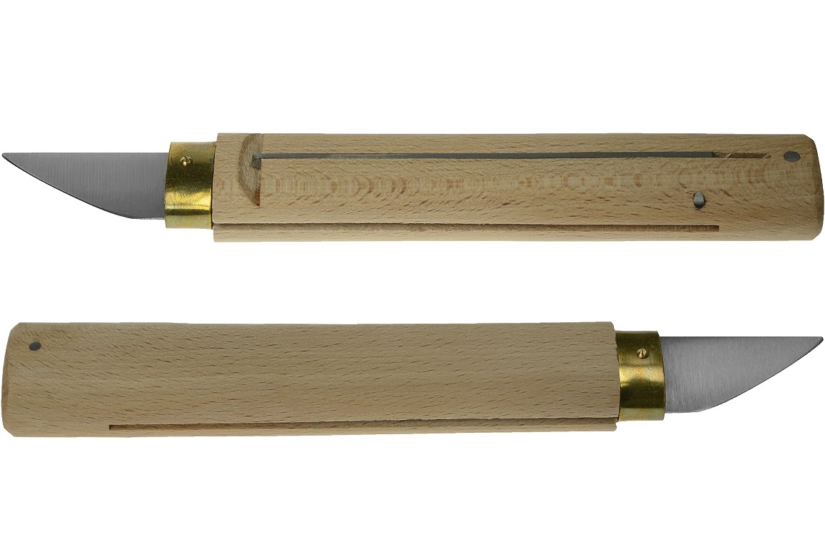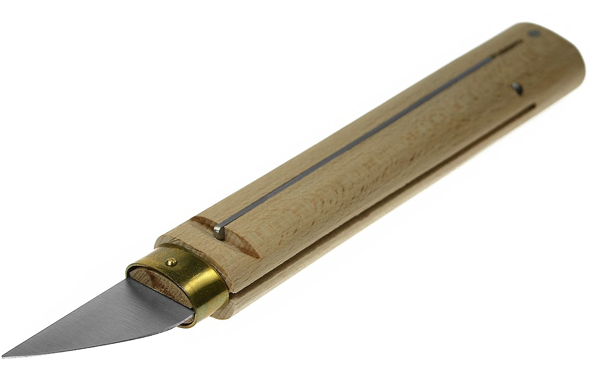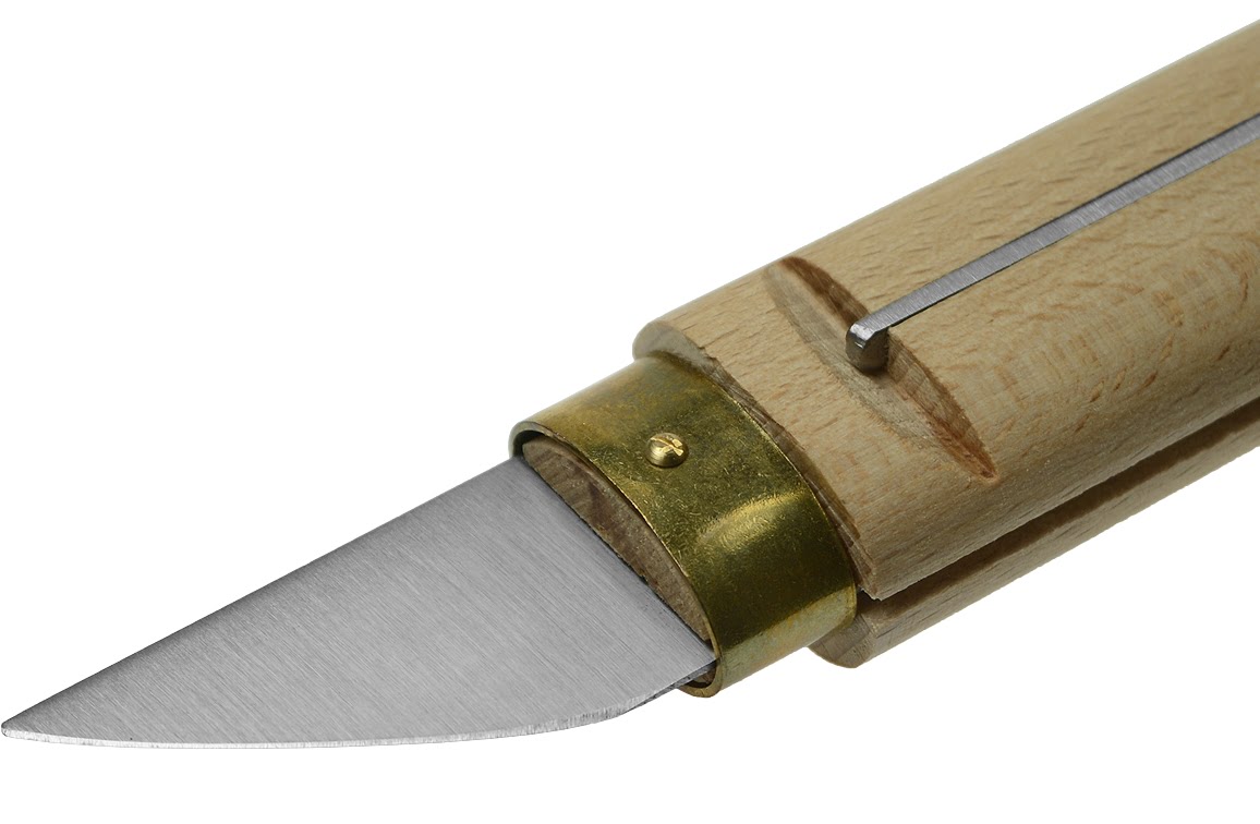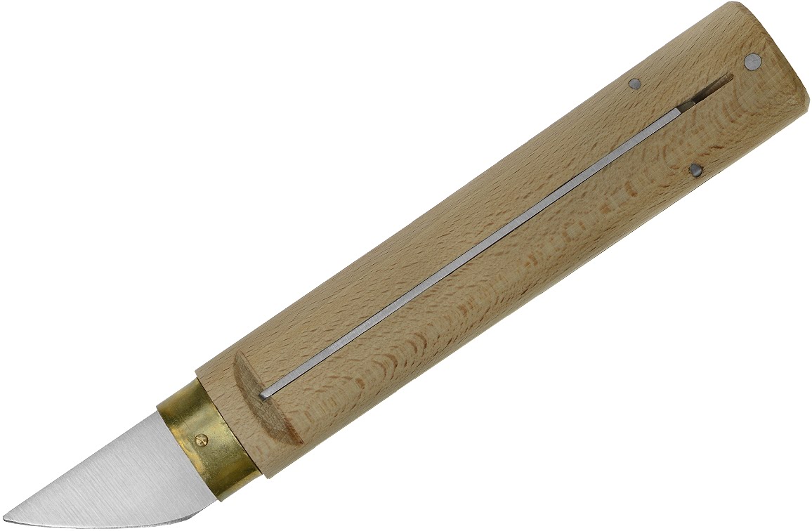De handgreep is van hout gemaakt, het lemmet is verstelbaar