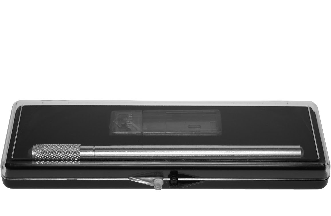 Inclusief opbergdoos / cadeaudoos en 6 verschillende reservemessen.