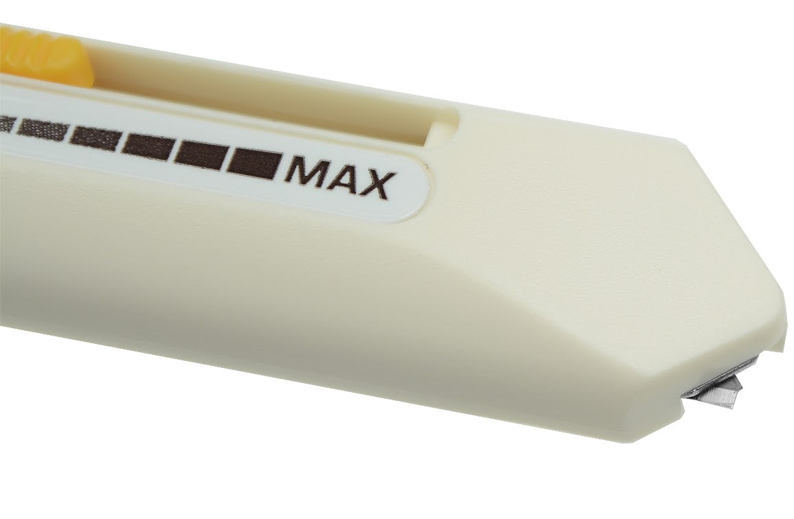 Uniek mes van Olfa. Dit mes snijdt enkel de bovenste laag van meerdere vellen papier of de drager van Vinyl/ Folie.